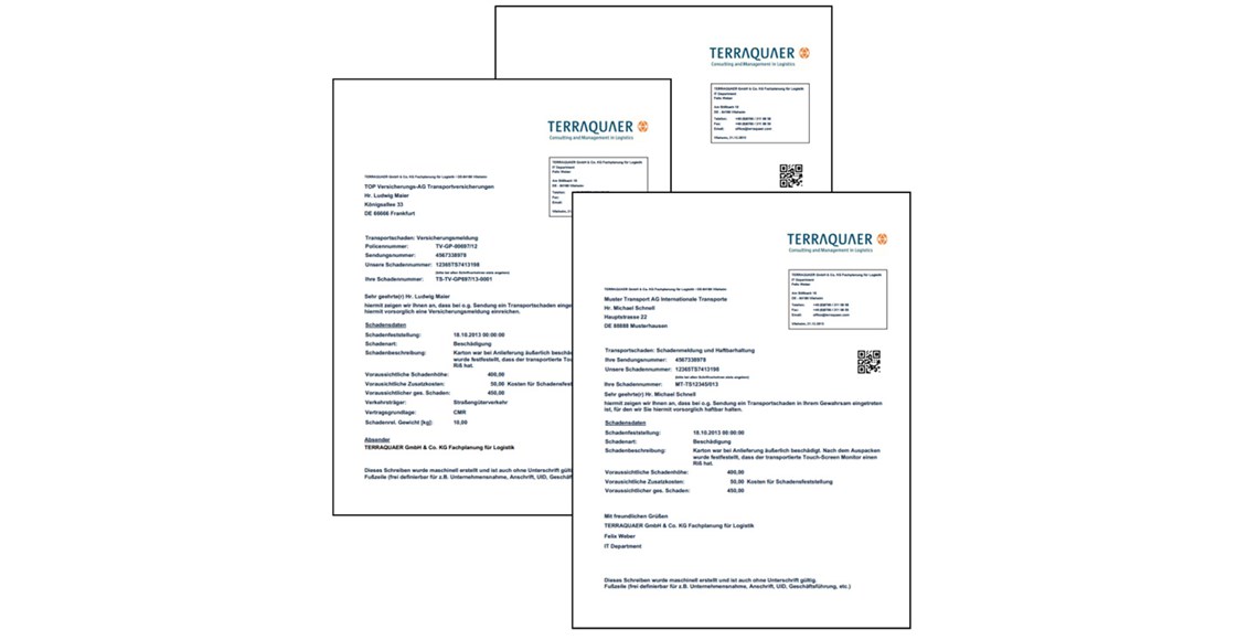 Zeit sparen: Mit dem Formular-Generator zur automatisierten Erstellung der notwendigen Korrespondenz. TQ-Claim³ erstellt Ihnen automatisch Dokumente wie Schadens- und Versicherungsmeldungen, Aktendeckblätter, etc. mit den jeweils relevanten Daten.