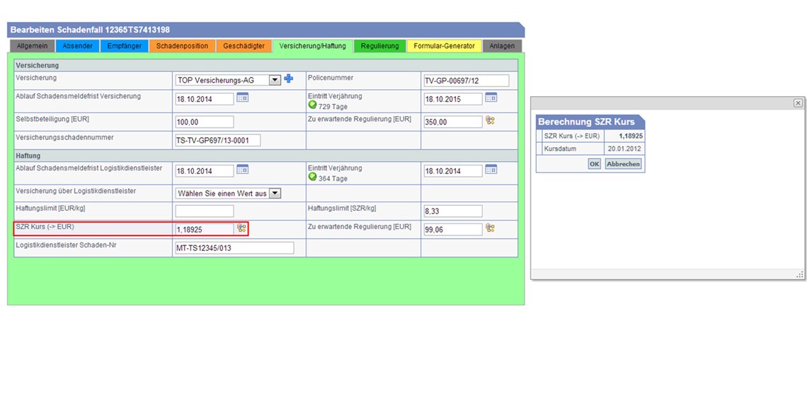 Wo finde ich den für den Schaden relevanten SZR:EUR Umrechnungskurs? Der TQ-Claim³ Berechnungsassistent macht das für Sie – mit nur einem Click…